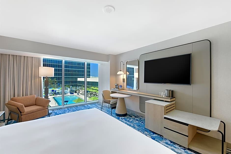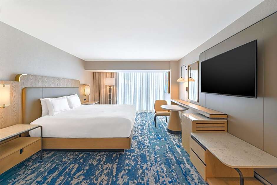 This contemporary room is located on the 5th floor and features a private balcony, flat-screen TV, refrigerator, gourmet coffee machine, in-room safe and tiled private bathroom.